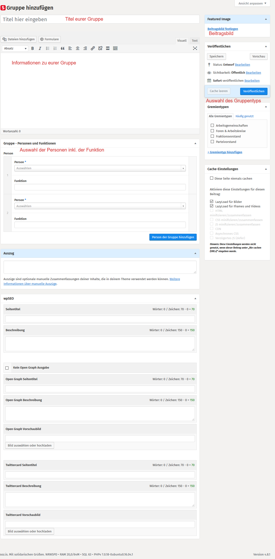 In das Feld Name schreibt ihr den Namen der Gruppe die ihr erstellen wollt. In das große Textfeld könnt ihr dann weitere Informationen zu dieser Gruppe schreiben. Welche Aufgaben hat die Gruppe, was macht welche Position in der Gruppe.
